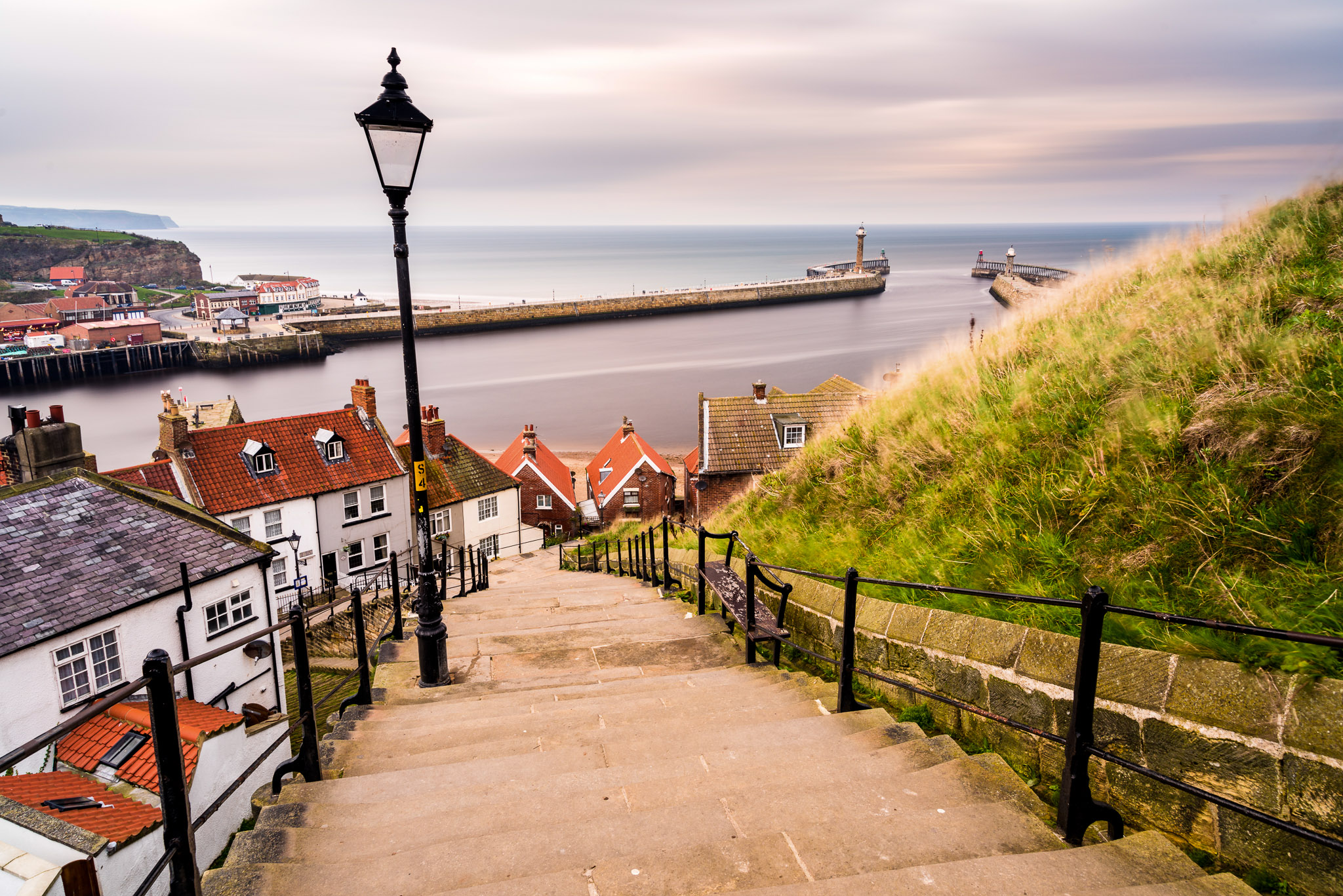 Enjoy panoramic views of the colourful harbour village Staithes, one of England’s most picturesque villages, full of quaint cottages and winding streets.